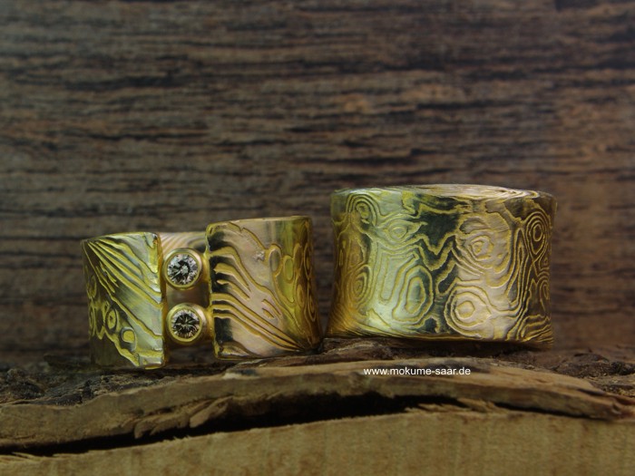 Das ist neu! Mujodogane-Schmuck in neuem Outfit21/05/14 Das ist neu! Auf der Suche nach neuen Ideen haben wir uns gedacht: warum nicht mal die Oberflächenfarbe verändern? Gedacht - getan... Normalerweise haben die Ringe aus Mujodogane und Silber eine Farbe wie Silber. Jetzt haben wir das Erscheinungsbild gewandelt und die Ringe erscheinen in einem völlig anderen Outfit ;-) Dabei ist uns beim Fotografieren ein besonderes Detail aufgefallen: bei dem Citrin-Ring sieht man durch den Stein hindurch die Struktur der Krappenfassung.