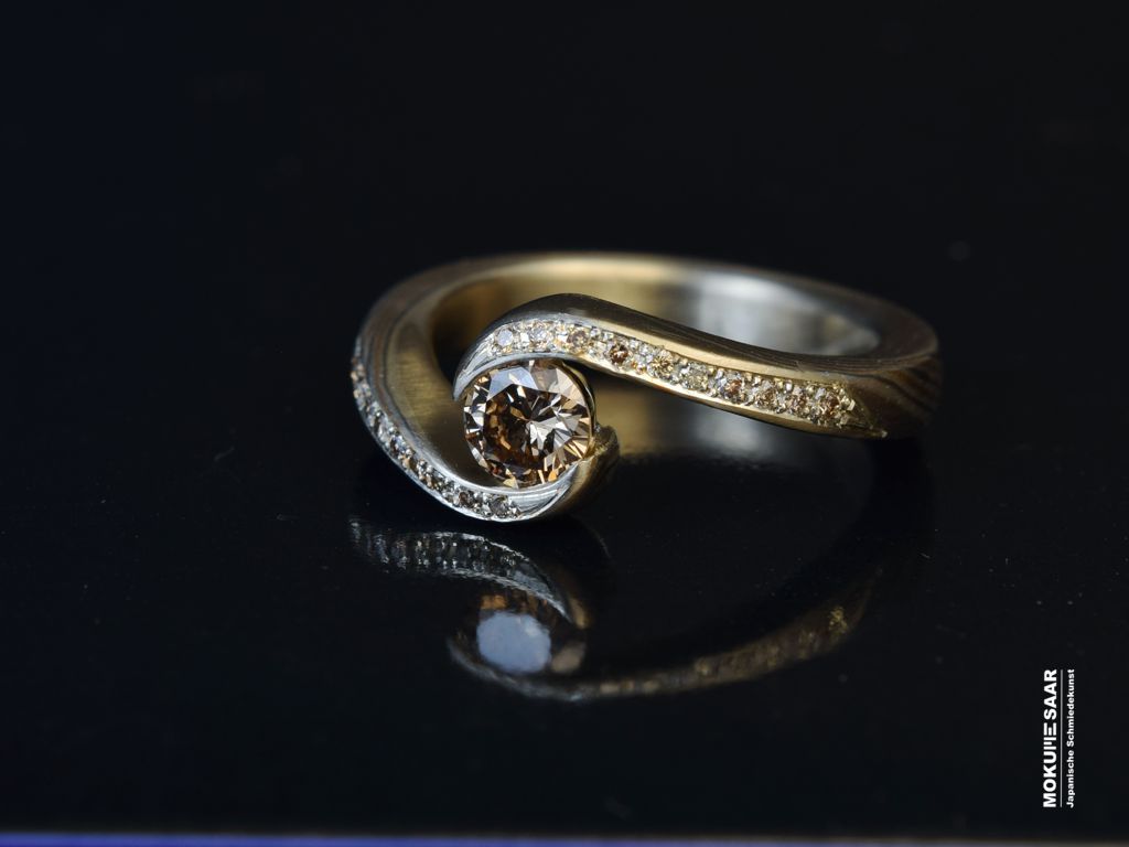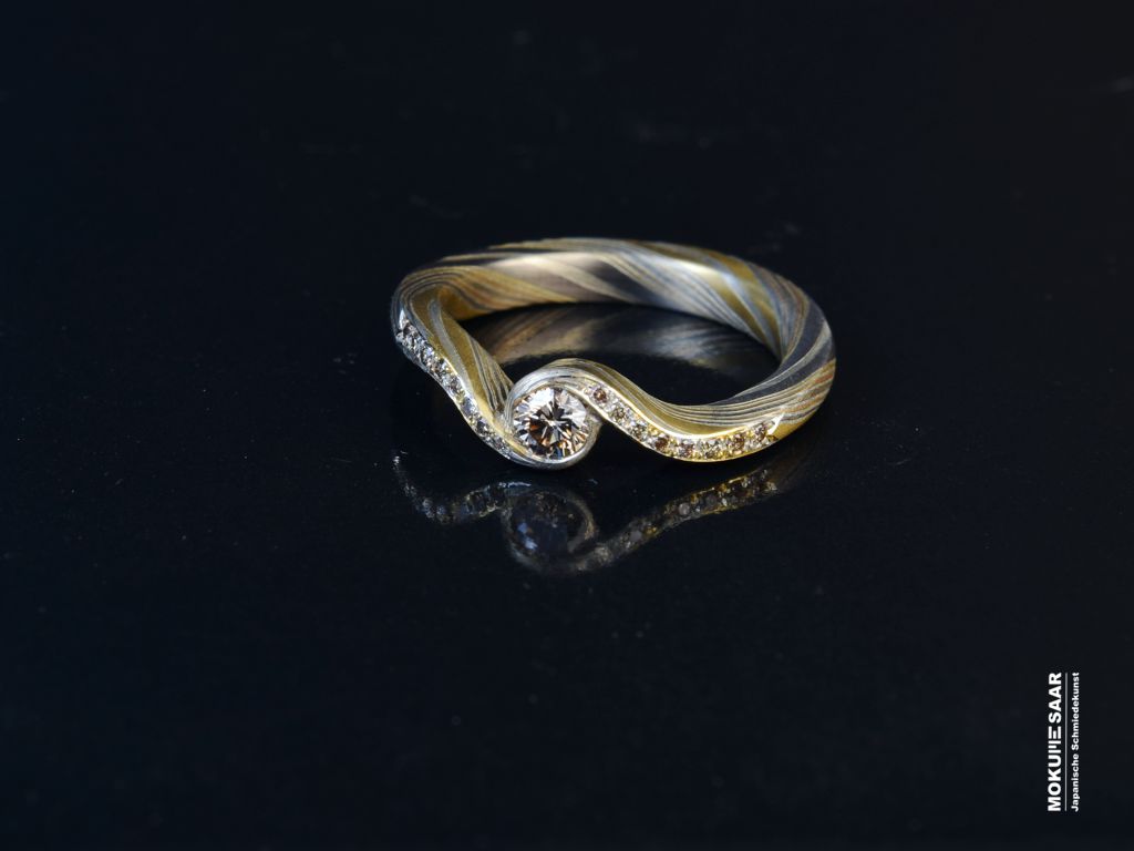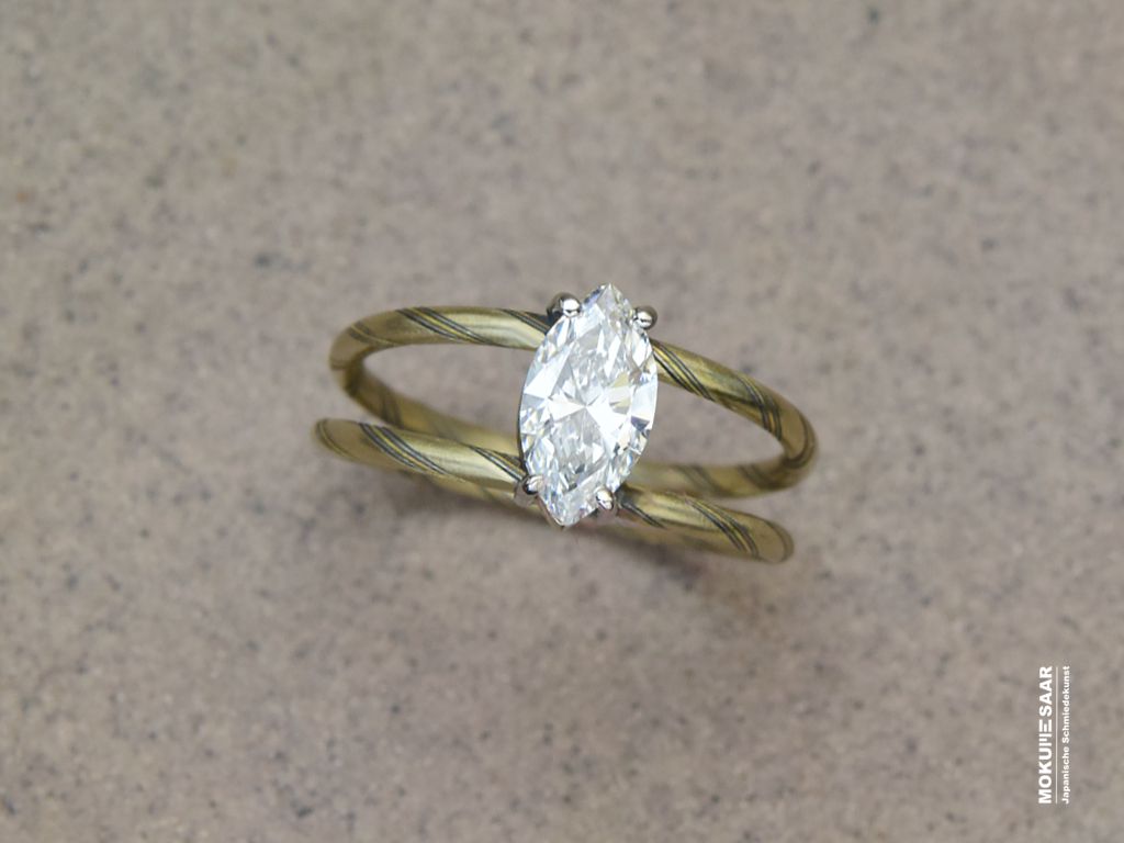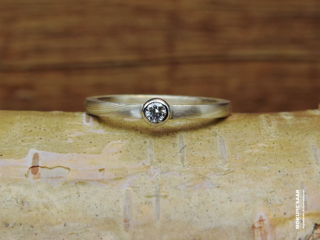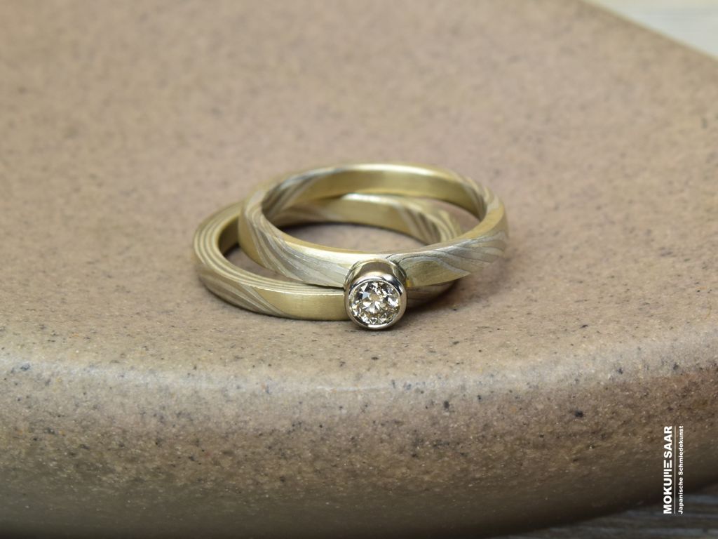 Einzigartige Verlobungsringe aus Mokume GaneEin Verlobungsring ist mehr als ein Schmuckstück. Er ist das Symbol für einen Moment, an den man sich ein Leben lang erinnert. Unsere handgeschmiedeten Ringe unterscheiden sich ganz bewusst von gewöhnlichen Verlobungsringen. Ihre Wirkung entsteht aus der Maserung und der einzigartigen Schmiedekunst. Ob als klassischer Verlobungsring, als Vorsteckring oder als Ring, der später als Ehering getragen wird: gemeinsam mit Ihnen gestalten wir ein Schmuckstück, das zu Ihnen passt – in Form, Material und Gestaltung. Gerne beraten wir Sie persönlich und nehmen uns Zeit, den Ring für Ihren Heiratsantrag zu entwerfen. Eine kleine Auswahl an sofort verfügbaren Mokume Gane Verlobungsringen finden Sie auch in unserem Shop: Mokume-Saar Shop Verlobungsringe So beginnt Ihre gemeinsame Zukunft mit einem Ring von Mokume-Saar, der von Anfang an eine eigene Geschichte in sich trägt.